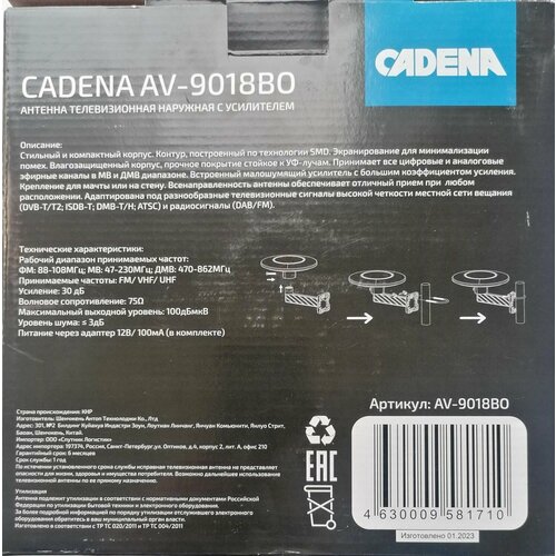 Уличная DVB-T2 антенна Cadena AV-161UV02