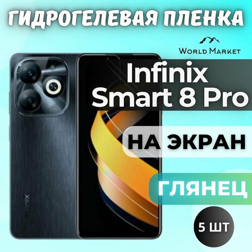 Комплект 5шт. Защитная гидрогелевая пленка на Infinix Smart 8 Pro / глянцевая на экран / Противоударная бронепленка с эффектом восстановления на Инфиникс Смарт 8 Про