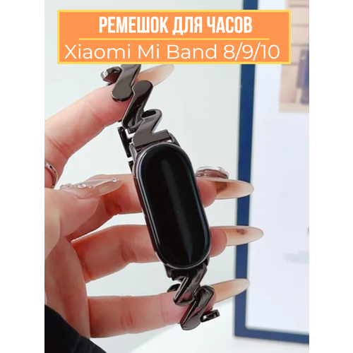 Ремешок для Xiaomi Smart Band 8 и 9, металлический, зигзаг, серебристый