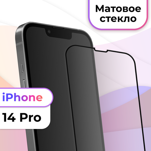 Защитное стекло на Apple iPhone 14 Pro / Матовое противоударное стекло для Айфон 14 Про / Черный
