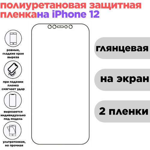 Комплект 2 шт. Гидрогелевая полиуретановая защитная пленка для iPhone 12, глянцевая