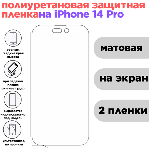 Комплект 2 шт. Гидрогелевая полиуретановая защитная пленка для iPhone 14 Pro, матовая