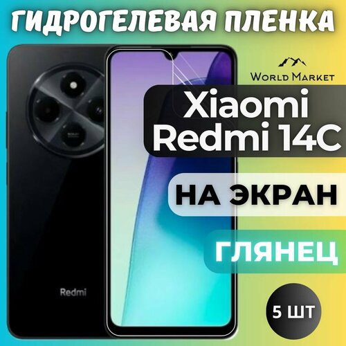 Комплект 5шт. Защитная гидрогелевая пленка на Xiaomi Redmi 14C / глянцевая на экран / защита с эффектом восстановления на Сяоми Редми 14ц