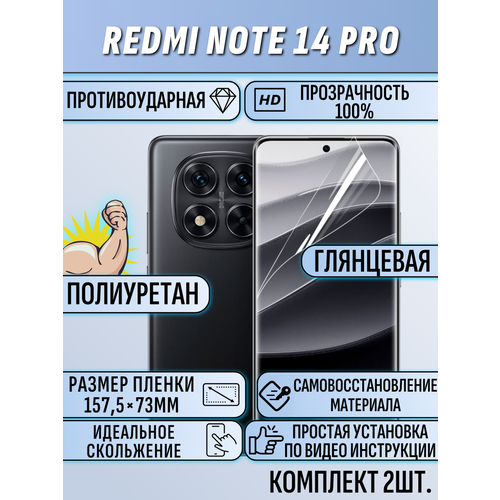 Гидрогелевая пленка для Redmi Note 14 Pro глянцевая 2 шт. в комплекте