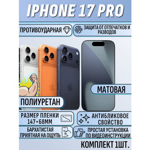 Гидрогелевая пленка iPhone 17 Pro матовое полиуретановое покрытие