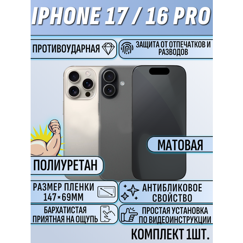 Гидрогелевая пленка для IPhone 16 pro / IPhone 17 защитная полиуретановая матовая на весь экран 1шт