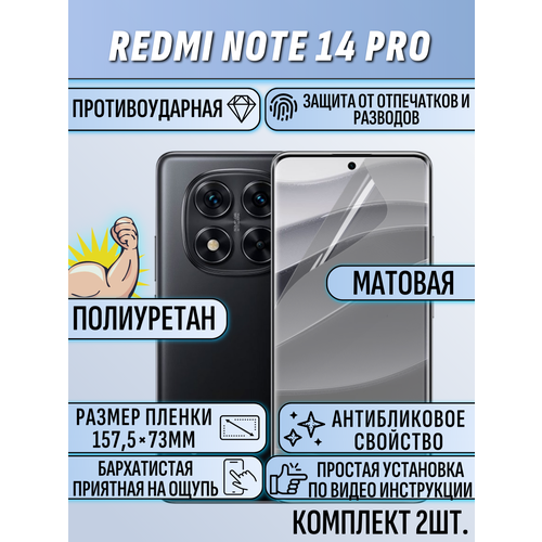 Гидрогелевая пленка для Redmi Note 14 Pro матовая 2 шт. в комплекте
