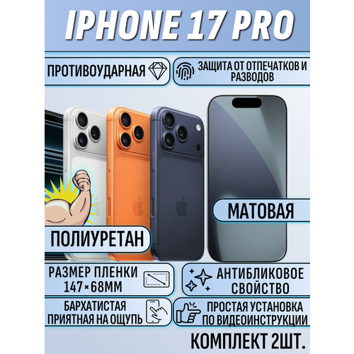 Гидрогелевая пленка iPhone 17 Pro матовое полиуретановое покрытие 2 шт