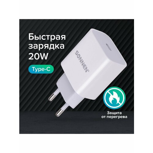 Быстрое зарядное устройство для iPhone (220В) SONNEN, порт Type - C, выходной ток 2A, белое