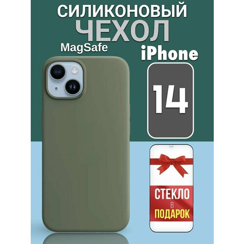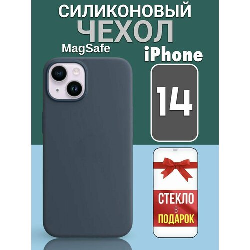 Чехол на iPhone 14 MagSafe силиконовый, Анимация и защитное стекло 9D на экран Айфон 14, защита блока камеры