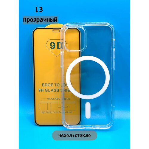 Комплект для iPhone 13 : прозрачный чехол с MagSafe и анимацией + стекло 9D (полная защита)