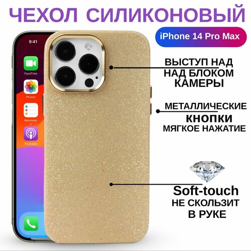 Чехол на iPhone 14 Pro Max премиум - силиконовый глянец с защитой экрана и камеры (золотой)