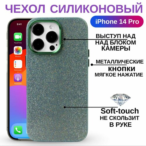 Чехол на iPhone 14 Pro премиум - силиконовый глянец с защитой экрана и камеры (зелёный)