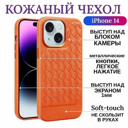 Кожаный чехол для iPhone 14 противоударный, чехол на айфон 14 с зашитой камеры и экрана