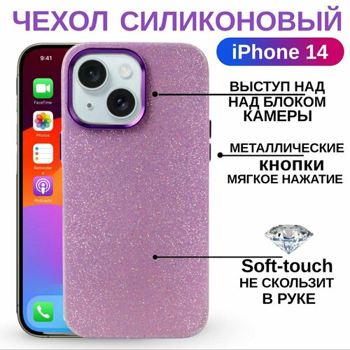 Чехол для iPhone 14 блестящий на Айфон 14 силиконовый с защита камеры и экрана, сиреневый