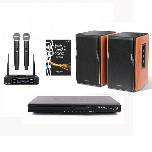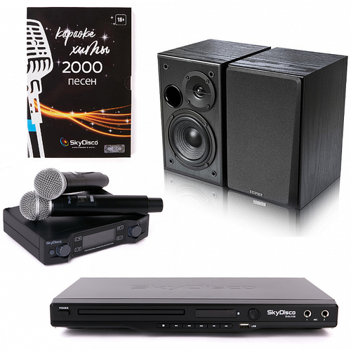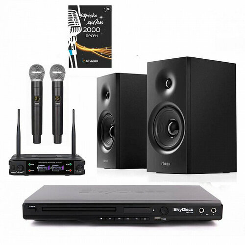 Комплект караоке для дома SkyDisco Karaoke Home Set 4+EDIFIER R1100: приставка с баллами, микрофоны, диск 2000 песен