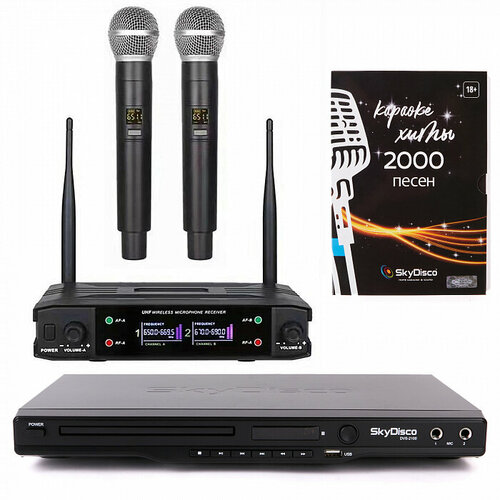 Комплект караоке для дома SkyDisco Karaoke Home Set 2 + R1380T: приставка с баллами, микрофоны, диск 2000 песен