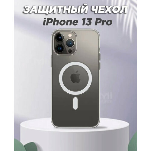 Магнитный силиконовый чехол для iPhone 13 Pro с поддержкой Magsafe ударопрочный прозрачный (GCR-CASE), прозрачный, м