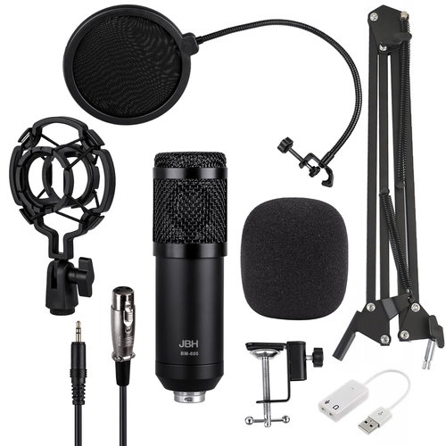 Конденсаторный студийный микрофон BM800 с подставкой и поп-фильтром, Черный