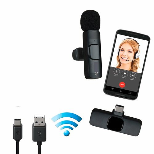 Микрофон петличный Беспроводной для андроид Type-C K8, Микрофон петличный / Беспроводной / Для блога / Bluetooth блютуз / На клипсе