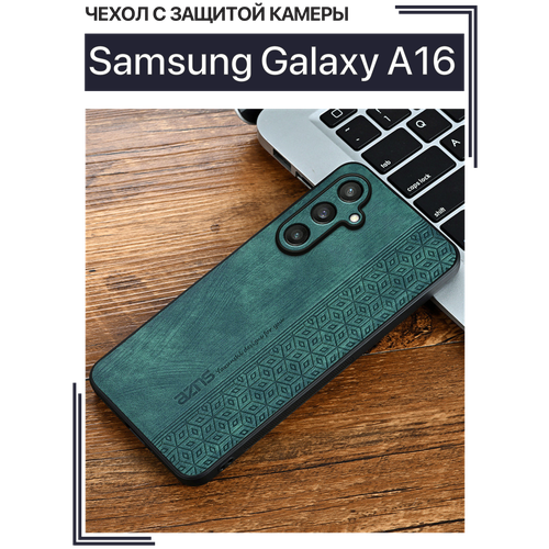 Чехол для Samsung Galaxy A16 кожаный с тиснением / Самсунг A16 с защитой камеры (зеленая)