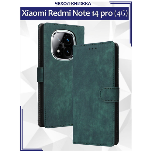 Чехол книжка для Xiaomi Redmi Note 14 Pro (4G) c магнитной застежкой / Сяоми Редми Ноут 14 Про 4G c отделением под карты (зеленая)