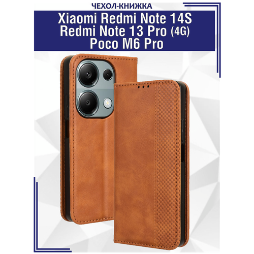 Чехол книжка для Xiaomi Redmi Note 14S/ Redmi Note 13 Pro (4G)/ Poco M6 Pro с магнитом и отделением под карты / Редми ноут 14S, ноут 13 про (коричневая)