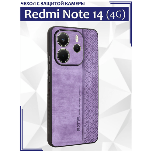 Чехол для Xiaomi Redmi Note 14 (4G) кожаный с тиснением / Сяоми Редми Ноут 14 4G с защитой камеры (фиолетовая)