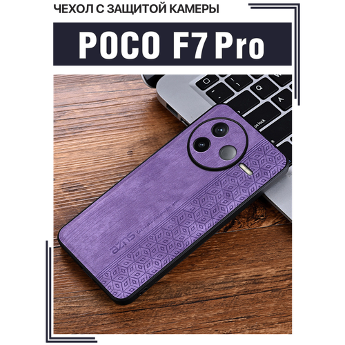 Чехол для Poco F7 Pro кожаный с тиснением / Поко Ф7 Про с защитой камеры (фиолетовая)