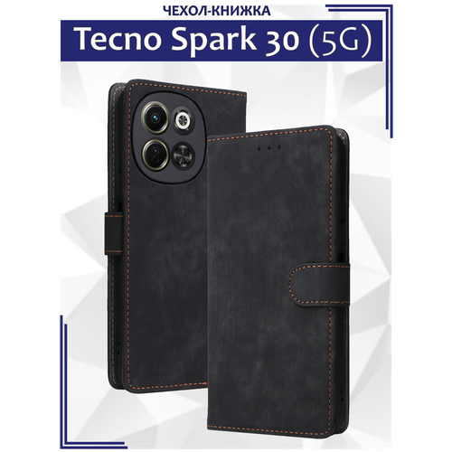 Чехол книжка для Tecno Spark 30 (5G) c магнитной застежкой / Спарк 30 c отделением под карты (черная)