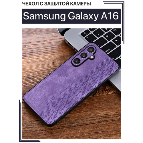 Чехол для Samsung Galaxy A16 кожаный с тиснением / Самсунг A16 с защитой камеры (фиолетовая)