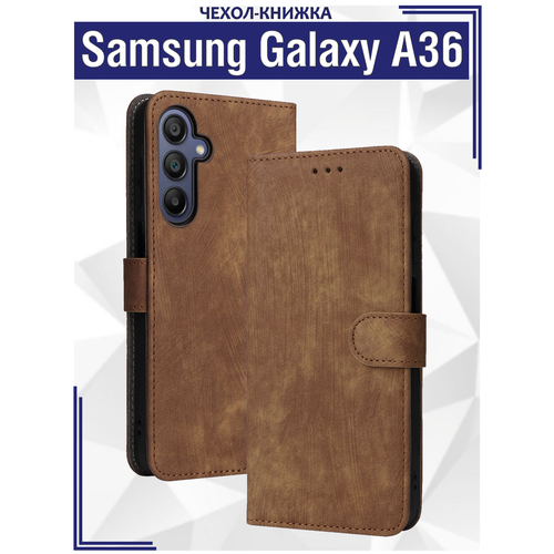 Чехол книжка для Samsung Galaxy A36 c магнитной застежкой / Самсунг Галакси А36 c отделением под карты (коричневая)