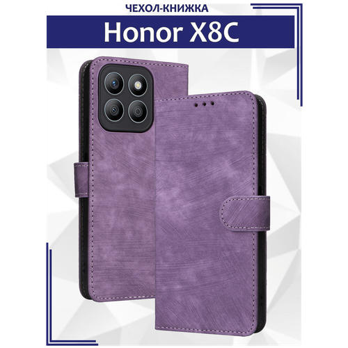 Чехол книжка для Honor X8c c магнитной застежкой / Хонор Х8с c отделением под карты (фиолетовая)
