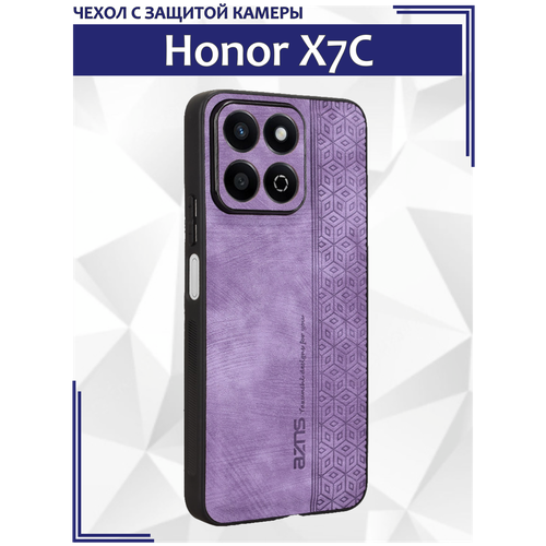 Чехол для Honor X7c кожаный с тиснением / Хонор Х7с с защитой камеры (фиолетовая)