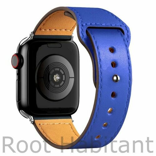 Кожаный ремешок для Apple Watch 3 4 5 6 7 8 9 SE Ultra, в корпусах 38, 40, 41, 42 серия 10. Синий / Blue