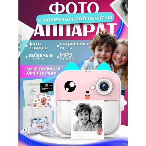 Детский фотоаппарат моментальной печати, встроенные игры, MP3 плеер, печать фото с телефона