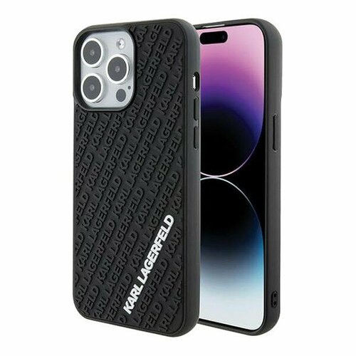 Чехол Karl Lagerfeld 3D Rubber Monogram w Metal logo Hard для iPhone 14 Pro Max, цвет Черный (KLHCP14XRUPKLPK)