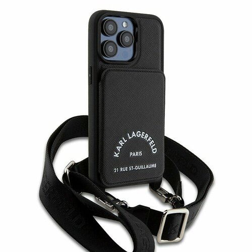 Karl Lagerfeld для iPhone 15 Pro Max чехол с ремешком Crossbody с карманом для карт кожаный Saffiano RSG