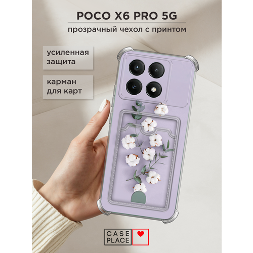 Чехол на Xiaomi POCO X6 PRO 5G (Поко X6 Про 5G) с картой и принтом Веточка хлопка