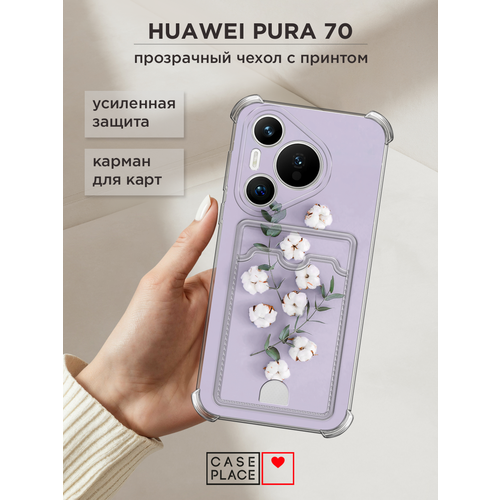 Чехол на Huawei Pura 70 (Хуавей Пура 70) с картой и принтом Веточка хлопка