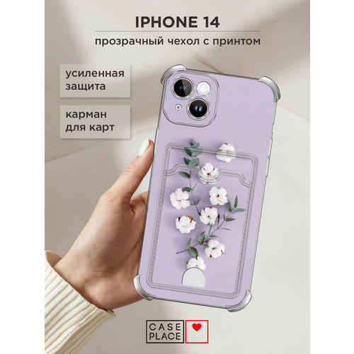 Чехол на Apple iPhone 14 (Айфон 14) с картой и принтом Веточка хлопка
