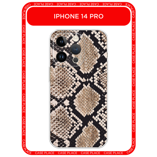 Чехол на Apple iPhone 14 Pro / Айфон 14 Про с принтом Кожа змеи бежевая
