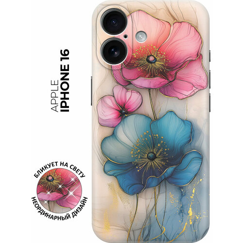 Силиконовый чехол на Apple iPhone 16 с принтом "Голубые и розовые ирисы"