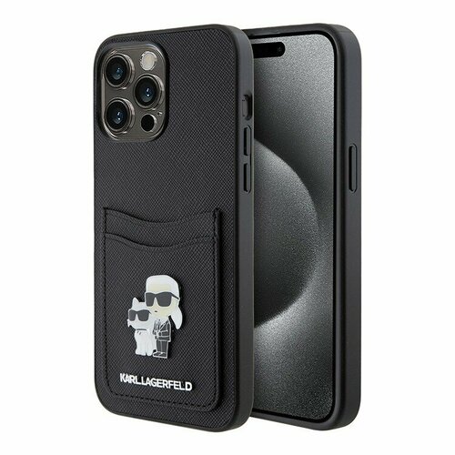 Karl Lagerfeld для iPhone 15 Pro Max чехол с карманом для карт PU кожа Saffiano NFT Karl & Choupette метал. вставка
