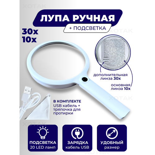 Лупа для чтения с подсветкой 10-30 кратное увеличение