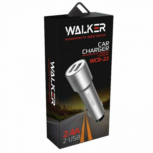 Автомобильное заряд. устр. Walker 2USB 2.4A WCR-22 серебристое