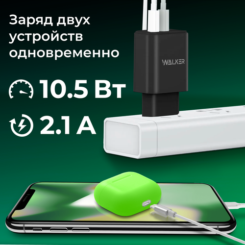 Зарядное устройство для телефона, WALKER WH-31, 10,5 Вт, 2,1 А, зарядка для iphone, xiaomi, Android, блок питания, адаптер для ноутбука, черный