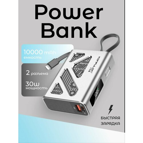 Портативный аккумулятор Konfulon 10000mAh, 30 W, встроенный кабель Type-C