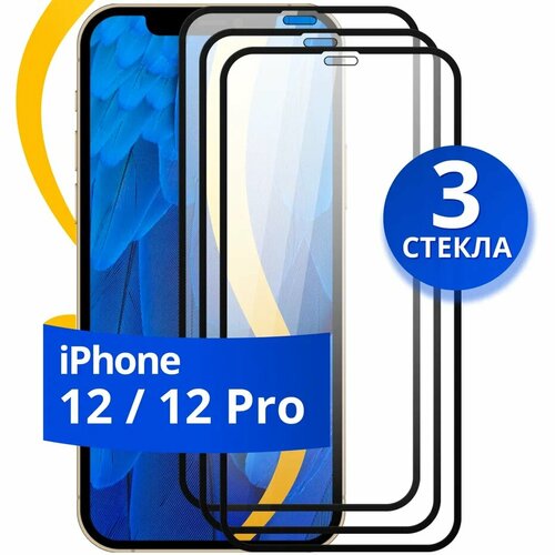 Комплект 3 шт. Защитное стекло для iPhone 12, 12 Pro, Противоударное стекло на Айфон 12, 12 Про