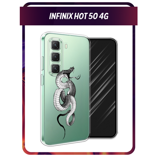 Чехол на Infinix Hot 50 4G / Инфиникс Хот 50 4G с принтом Монохромная змея рисунок, прозрачный